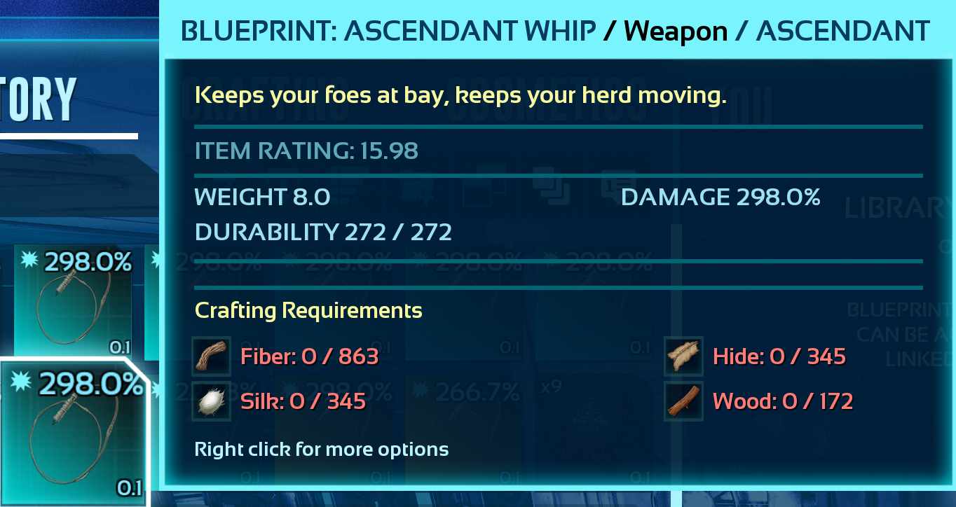 Get an unused Whip Blueprint and craft the ultimate quality-of-life tool whenever you need it. Perfect for PvE farming sessions, cave runs, and quick post-fight clean-ups.
